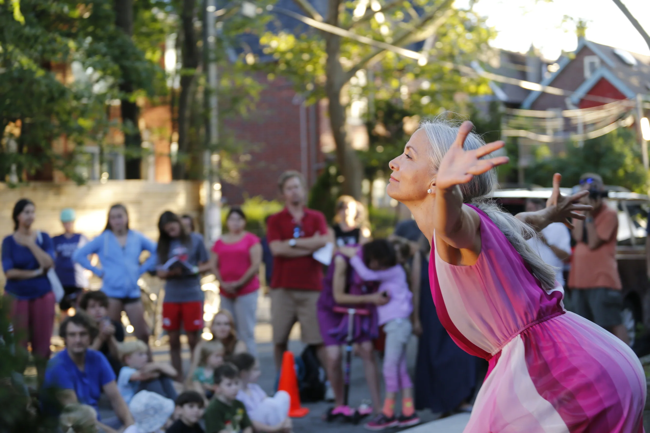 Porch View Dances (PVD) is an award-winning community dance festival that engages everyday people as creators, storytellers and performers – many of whom have never danced before. A tour guide leads audience members through Seaton Village, traveling from house to house to see new dance works created with professional choreographers and performed by local families in the front yards, and porches of their own homes.