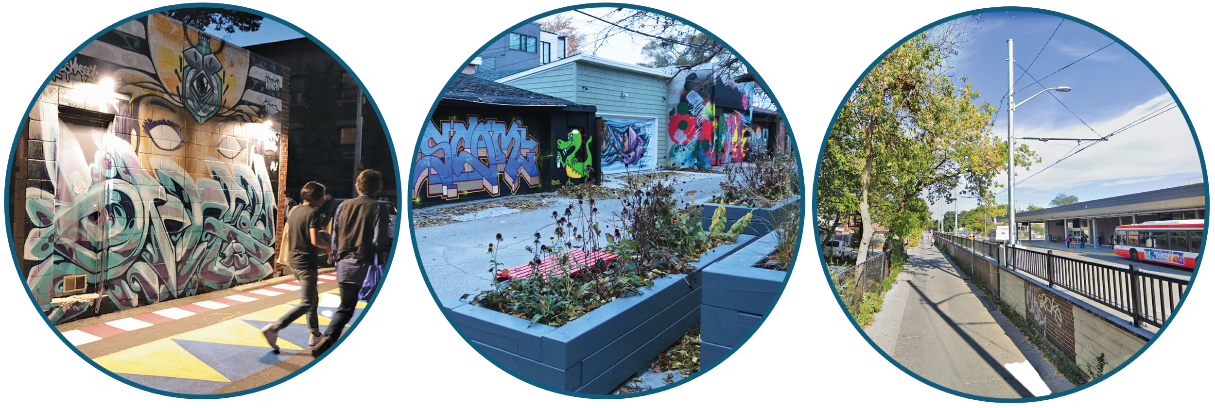 The Danforth-Main Laneway Connection project made improvements to three laneways along Danforth East — running to the north and south of Main Street Station and to the south of Coleman Park. These improvements increased around-the-clock safety, enhanced visibility and navigability, and created permeable, people-friendly edges connecting the laneways with the neighbouring walkways and park.